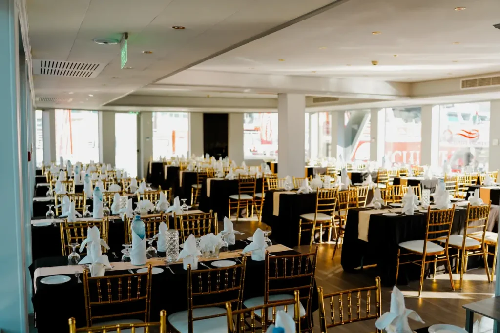 All corporate charters include a dedicated events coordinator from our team who will liaise with you on all logistics, catering, AV requirements, and any specific branding or setup needs. View our corporate packages.